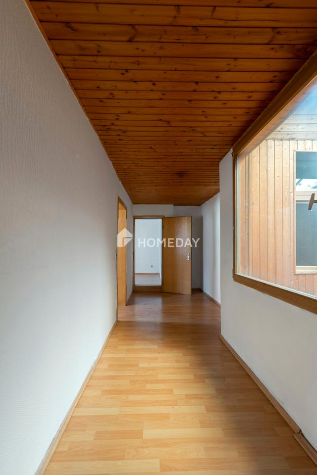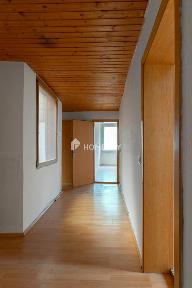Das erste Obergeschoss dient als Wohnbereich und wird dank großzügiger Fenster mit viel Tageslicht durchflutet. Hier finden die neuen Eigentümer großzügige Wohnflächen mit drei Schlafzimmern, zwei Wohnzimmern, eine Küche und ein voll ausgestattetes Tageslichtbad mit einer Badewanne und zusätzlichen Dusche. Hier haben die neuen Eigentümer die Möglichkeit, die Räume nach ihren individuellen Wünschen zu gestalten und einzurichten. Darüber hinaus gibt es ein ausbaufähiges Dachgeschoss, das zusätzliches Potential für weitere Räumlichkeiten bietet.