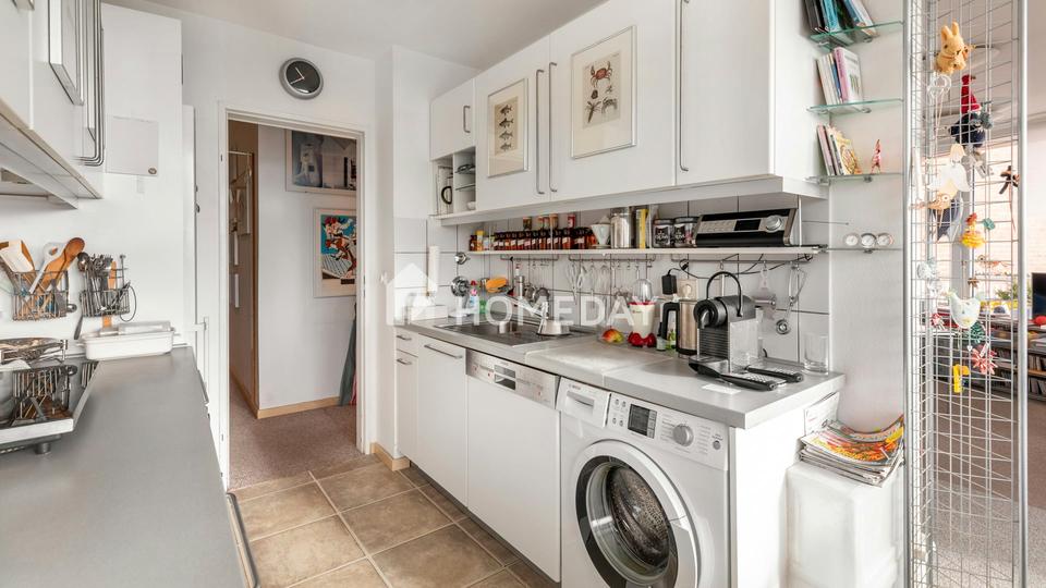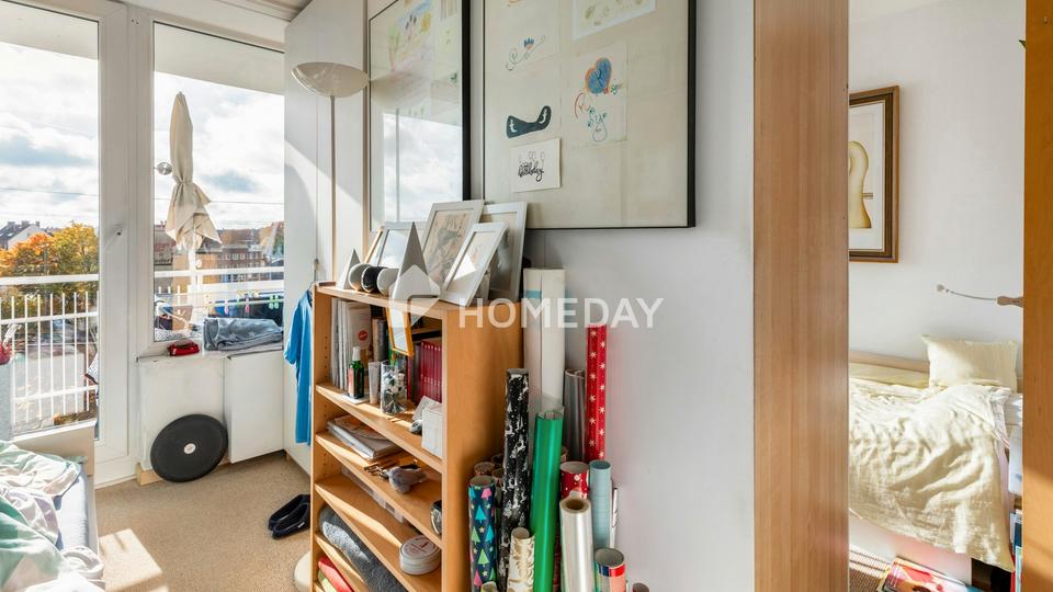 Im fünften Obergeschoss eines gepflegten Mehrfamilienhauses erwartet Sie diese rund 60 Quadratmeter große Wohnung mit einem durchdachten Grundriss und freundlicher Atmosphäre. Zwei gut geschnittene Zimmer, ein heller Wohnbereich mit Zugang zum Balkon und ein einladender Ausblick über die umliegenden Dächer verleihen diesem Zuhause ein luftiges, städtisches Wohngefühl mit hohem Komfortfaktor.
