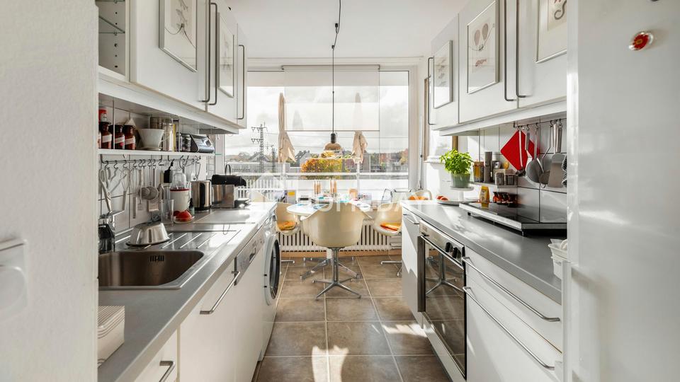 Ausstattung: Im fünften Obergeschoss eines gepflegten Mehrfamilienhauses erwartet Sie diese rund 60 Quadratmeter große Wohnung mit einem durchdachten Grundriss und freundlicher Atmosphäre. Zwei gut geschnittene Zimmer, ein heller Wohnbereich mit Z…