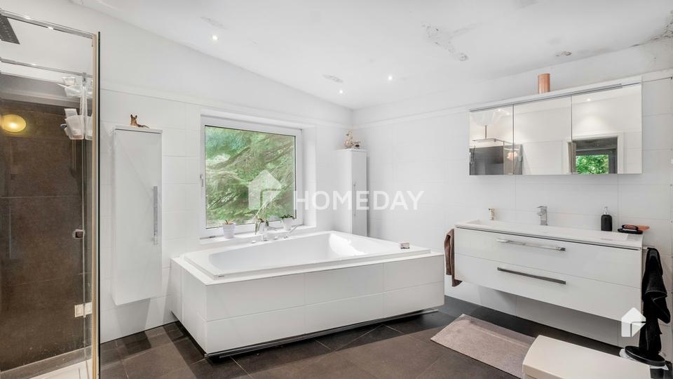 • Drei Tageslichtbäder, eines mit Eckbadewanne, ein Bad im Ausbau