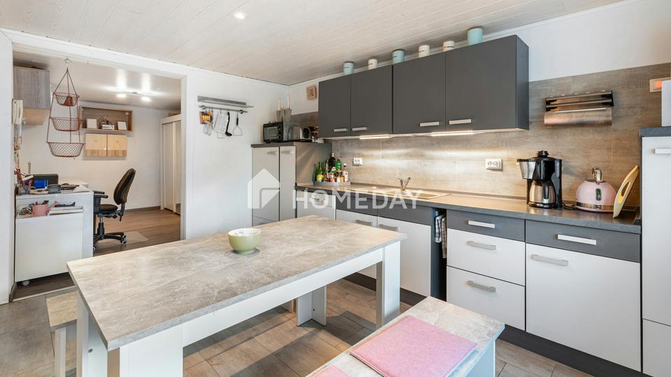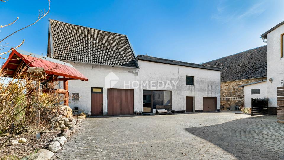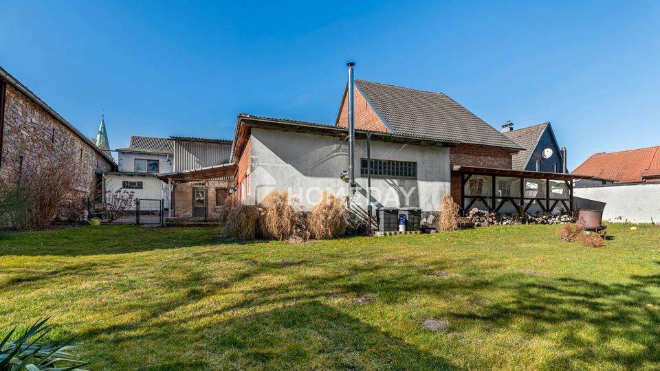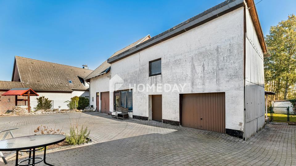 Ein besonderes Highlight ist das massive Nebengebäude, das sich hervorragend für Handwerker, Hobbys oder ein Gewerbe eignet. Für Ihre Fahrzeuge stehen eine Einzelgarage, eine Doppelgarage sowie zusätzliche Stellplätze im Freien zur Verfügung.